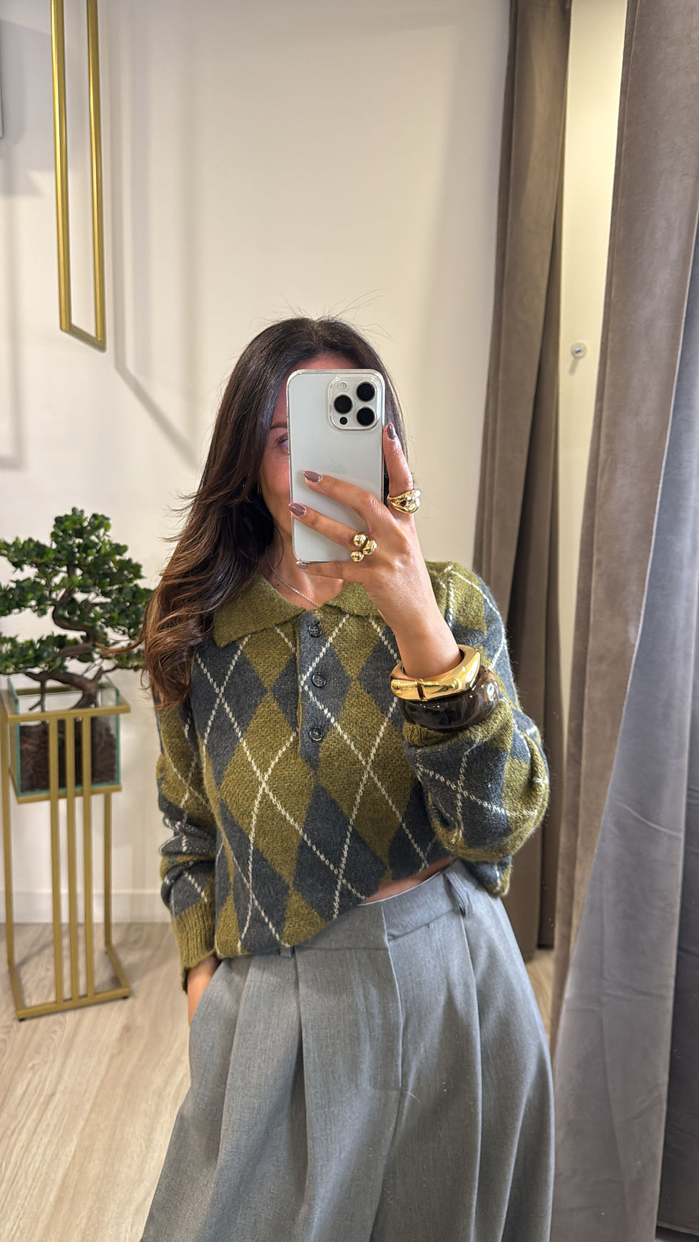 Camisa com pormenor em dourado no pescoço